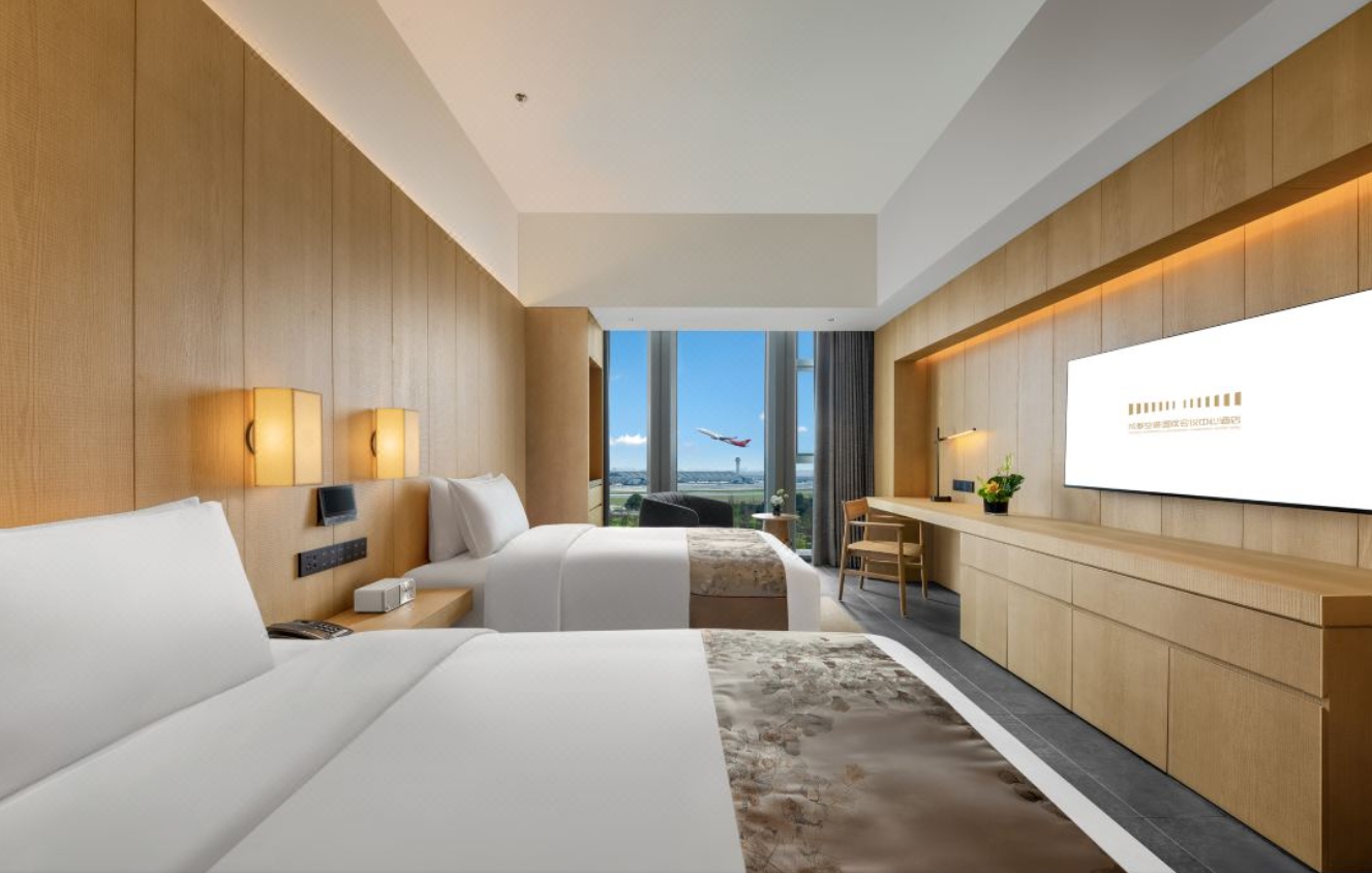 成都空港国际会议中心酒店,巧妙融合了川西古韵与现代极简之美,九层楼阁连廊轻绕。酒店配属时尚雅致、设计现代的客房及套房,并配备了云港全日制餐厅、中餐包间、大堂酒廊、连廊酒吧、茶室与健身房,每处细节都透露着对品质生活的追求。会议中心总面积7.59万平方米,会议面积1.2万平方米,展览面积1.4万平方米,其中60平方米至4330平方米的配套厅室50间,可灵活满足高端政务、商务、学术活动。会议中心三层为核心功能区,设有总面积4330平方米的无柱大宴会厅,层高逾8米,规模居成都第二;并配备二十余间规格各异的分会场。周边环绕8000平方米的序厅展区,可全面承接千人规模的会议、展览及餐饮等综合需求。