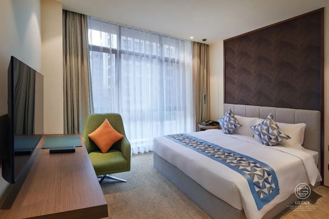 国测国际会议会展中心总建筑面积约32万平方米,集会议、会展、剧院、 休闲娱乐设施、住宿、餐饮等功能于一体,可容纳8000人同时与会。国测国际会议会展中心拥有超高品质床垫及现代豪华家具,客房布置温馨典雅,提供舒适的居住体验,满足您不同的需求。