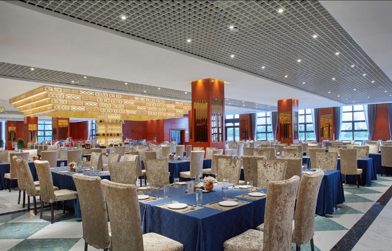 健身瑜伽中心配备全套有氧、自由力量和力量健身器材,提供基础瑜伽课程等,免费向住店客人开放,增强身体素质提供良好的场所。西餐厅主要经营早、中、晚三餐自助,餐厅设有儿童乐园,配备各种滑梯、玩具。中餐厅每个包间风格独特,环境典雅,满足家庭聚会,朋友宴请,商务洽谈等各种需求。