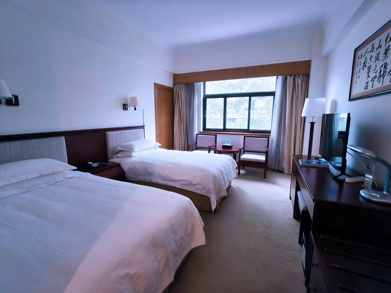 酒店按照星酒店标准建造,宾馆分为ABC三栋楼,每栋楼均为6层高,全部安装电梯,酒店有A、B、C公寓楼三栋,拥有标准间、豪华标准间、套房等各类客房,可容纳567人同时住宿。房间内分别有中央空调、分体式空调两种,100兆宽带、闭路电视、液晶屏触摸电话机等设施。