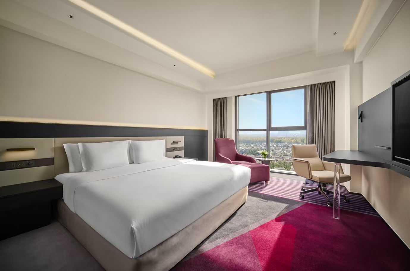 Crowne Plaza Beijing International Airport is located in the Tianzhu Airport Economic Development Zone, across the road from the China International Exhibition Center (New Hall), and close to the Guozhan Station of Metro Line 15. The hotel is also surrounded by high-end villa residential area, shopping malls and restaurants with various flavors. A variety of tastefully furnished rooms and suites are comfortable, elegant, and proactively equipped for modern business travelers. Among them, the deluxe room and deluxe suite and above is newly renovated, opening a new era of modern business travel for guests. In addition, there are three vary restaurants in the hotel provide first-class food from home to exotic style to meet the different needs of guests. Besides the busy work and business activities, guests can also enjoy quality downtime at hotel's lobby bar, fitness center, indoor heated swimming pool and other leisure places for guests. The hotel provides transfer bus service between Capital Airport and hotel, Please make a reservation by calling in advance for access. |